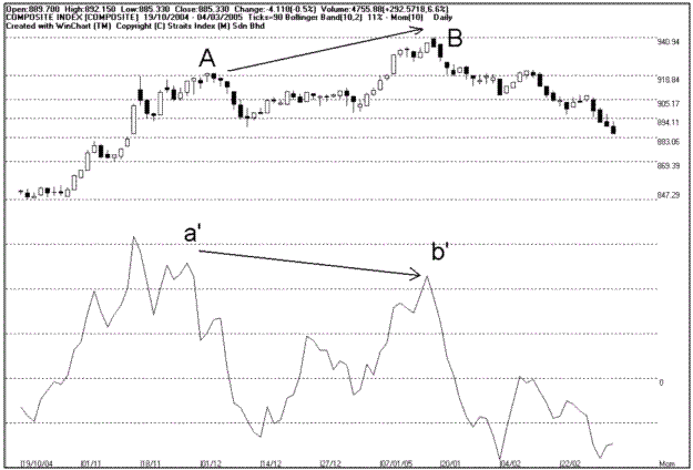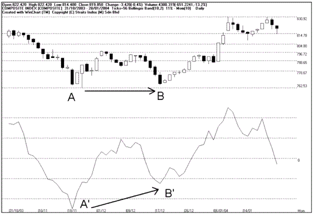Momentum is another fundamental oscillator designed to measure the rate of price change, not the actual price level. Momentum is calculated from the net difference between the current closing price and the oldest closing price from a predetermined period. Momentum is a trend following where it is used to detect abnormal increase or decrease in the rate of acceleration of the price movement, thus giving bullish and bearish divergence signals. Construction of the Momentum: